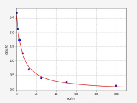 This kit was based on sandwich enzyme-linked immune-sorbent assay technology. Capture antibody was pre-coated onto 96- well plates. And the biotin conjugated antibody was used as detection antibodies. The standards, test samples and biotin conjugated detection antibody were added to the wells subsequently, and washed with wash buffer. HRP-Streptavidin was added and unbound conjugates were washed away with wash buffer. TMB substrates were used to visualize HRP enzymatic reaction. TMB was catalyzed by HRP to produce a blue color product that changed into yellow after adding acidic stop solution. The density of yellow is proportional to the target amount of sample captured in plate. Read the O.D. absorbance at 450nm in a microplate reader, and then the concentration of targetcan be calculated.