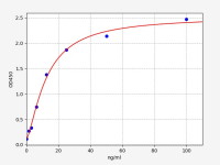 This kit was based on sandwich enzyme-linked immune-sorbent assay technology. Capture antibody was pre-coated onto 96- well plates. And the biotin conjugated antibody was used as detection antibodies. The standards, test samples and biotin conjugated detection antibody were added to the wells subsequently, and washed with wash buffer. HRP-Streptavidin was added and unbound conjugates were washed away with wash buffer. TMB substrates were used to visualize HRP enzymatic reaction. TMB was catalyzed by HRP to produce a blue color product that changed into yellow after adding acidic stop solution. The density of yellow is proportional to the target amount of sample captured in plate. Read the O.D. absorbance at 450nm in a microplate reader, and then the concentration of targetcan be calculated.